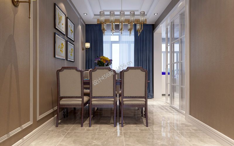 地中海钻石湾美式风格家庭餐桌椅摆放设计图2020
