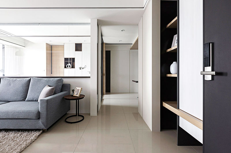 2、针对一通到底的空间结构,可以采用隔断的方式,既完美利用了空间,又保留了空间的完整性与独立性,同时还避免了开放空间与相对隐秘性区域间的矛盾。另外还可采用推拉式隔断对这种类型的空间进行分割,既可合又可开。