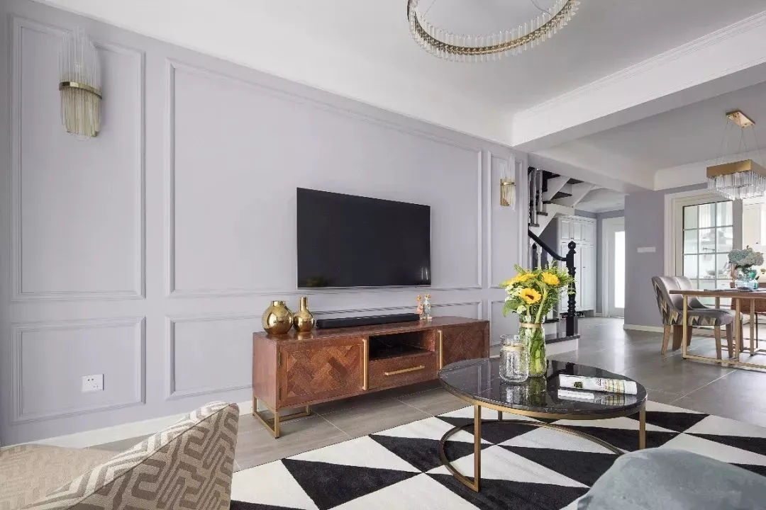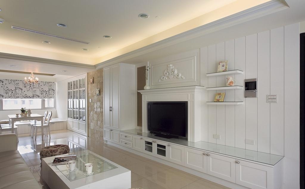 选择吊柜或矮柜来装饰电视墙面,为空间凸显更多层次,让所有的零碎杂物统统收纳于无形之中,也可以带来意想不到的美感