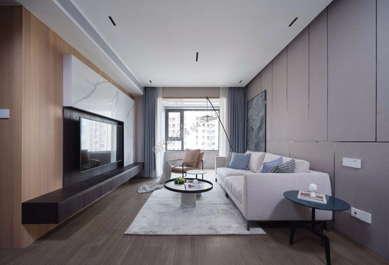 119平米现代简约三居室客厅电视墙装修效果图