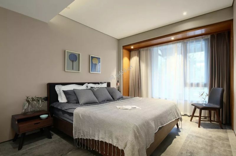 105平米简约风格三室两厅卧室窗帘装修效果图
