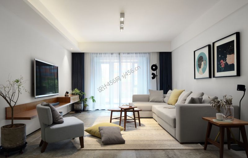 105平米简约风格三室两厅客厅装修效果图