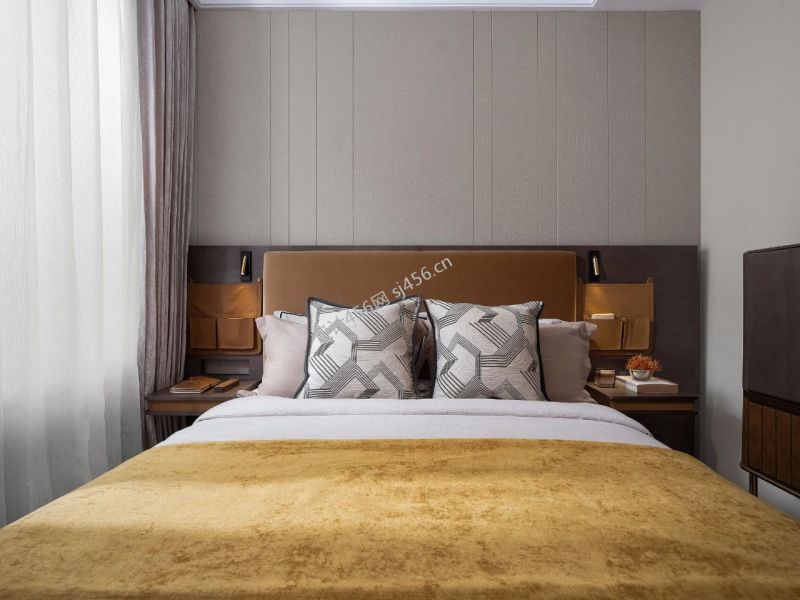 103平米轻奢风格三室两厅卧室床头装修效果图