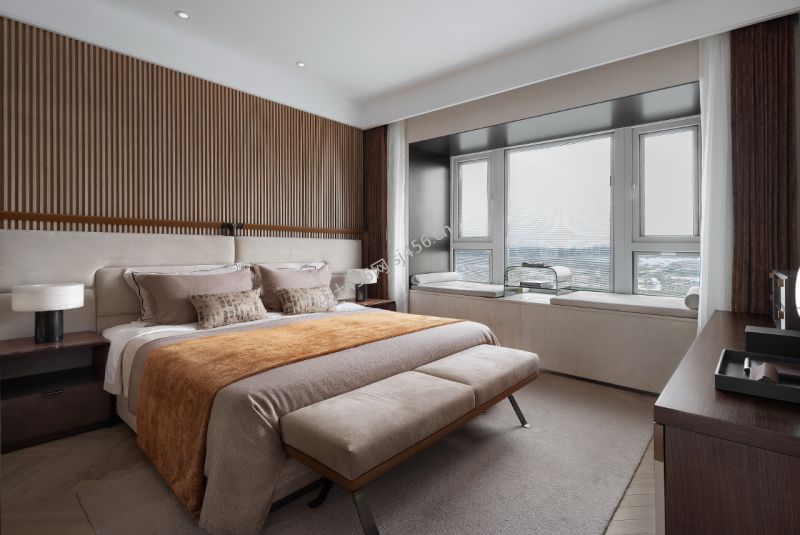 103平米轻奢风格三室两厅卧室窗帘装修效果图