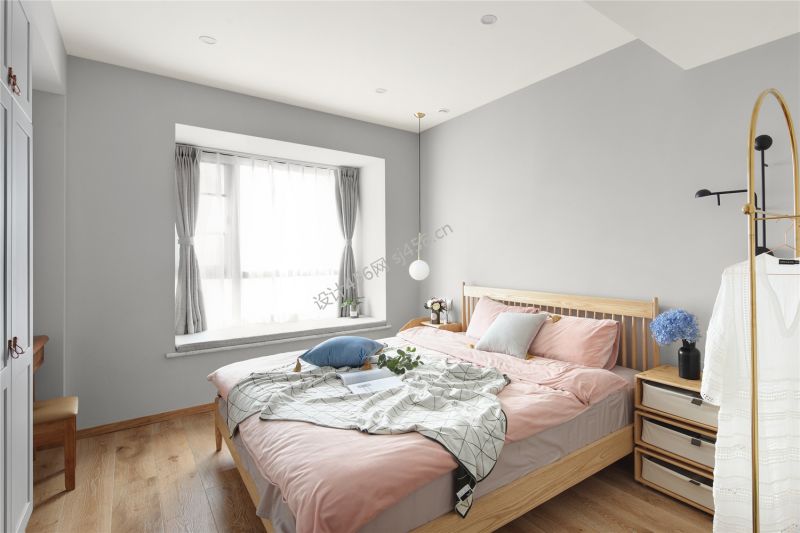 122平米北欧风格三室两厅卧室窗帘装修效果图