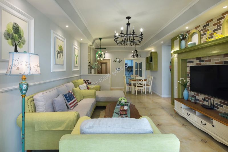 103平米美式风格三室两厅客厅装修效果图