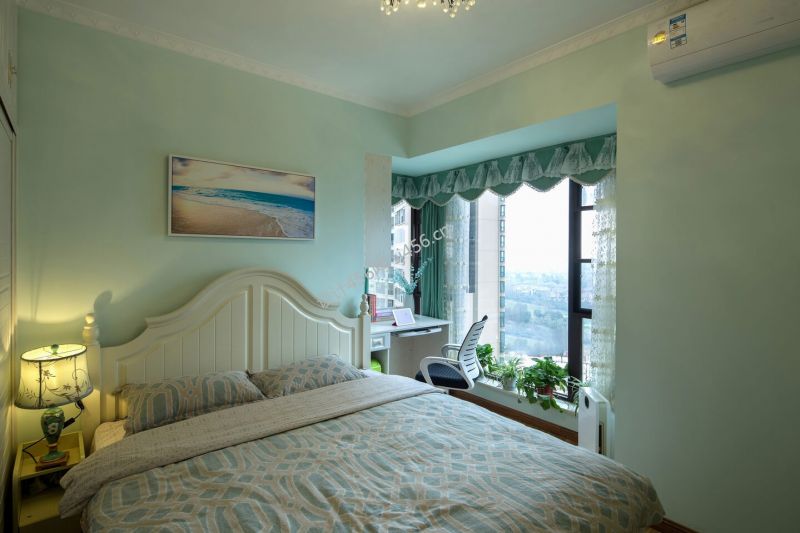 103平米美式风格三室两厅卧室窗帘装修效果图