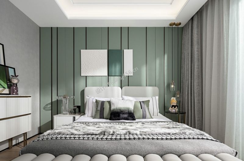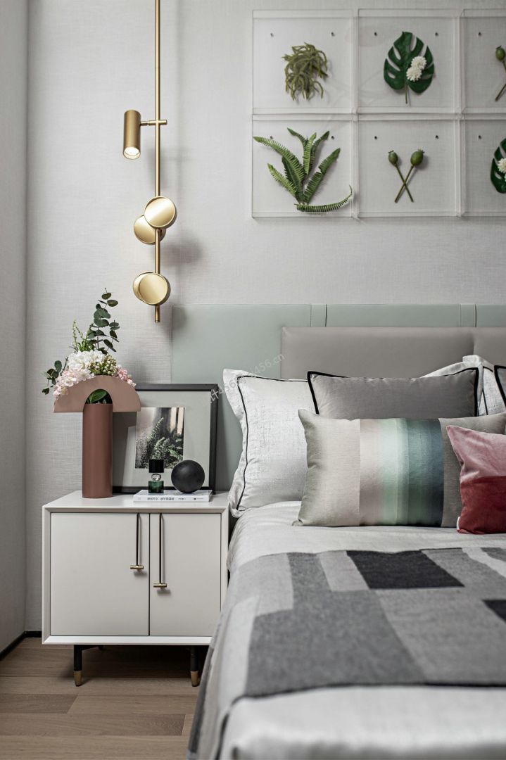97平米轻奢风格三室两厅卧室床头装修效果图