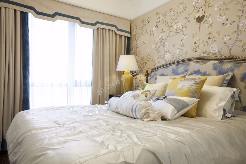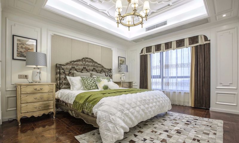 116平米欧式风格三室两厅卧室窗帘装修效果图