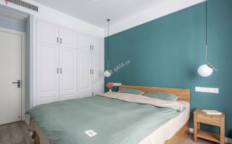 99平米现代简约三居室卧室背景墙装修效果图
