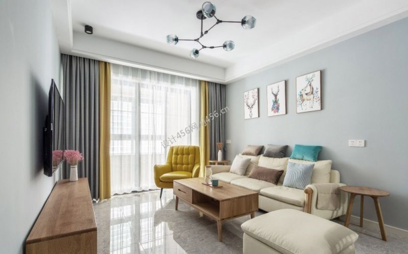 99平米现代简约三居室客厅吊顶装修效果图