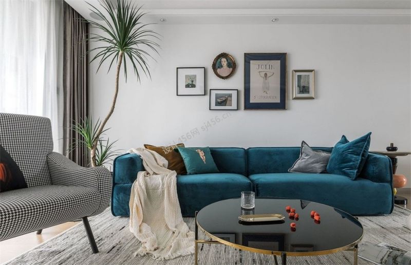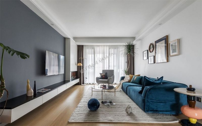 112平米现代轻奢三居室客厅沙发墙装修图片