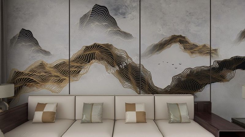 115平米新中式风格三居室卧室背景墙装修效果图