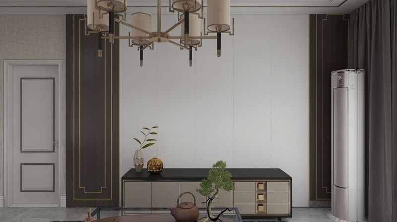 115平米新中式风格三居室客厅电视墙装修效果图
