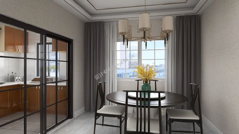 115平米新中式风格三居室餐厅吊顶装修效果图