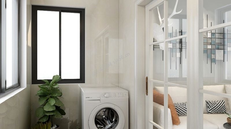 86平米现代简约二居室阳台洗衣机柜装修效果图