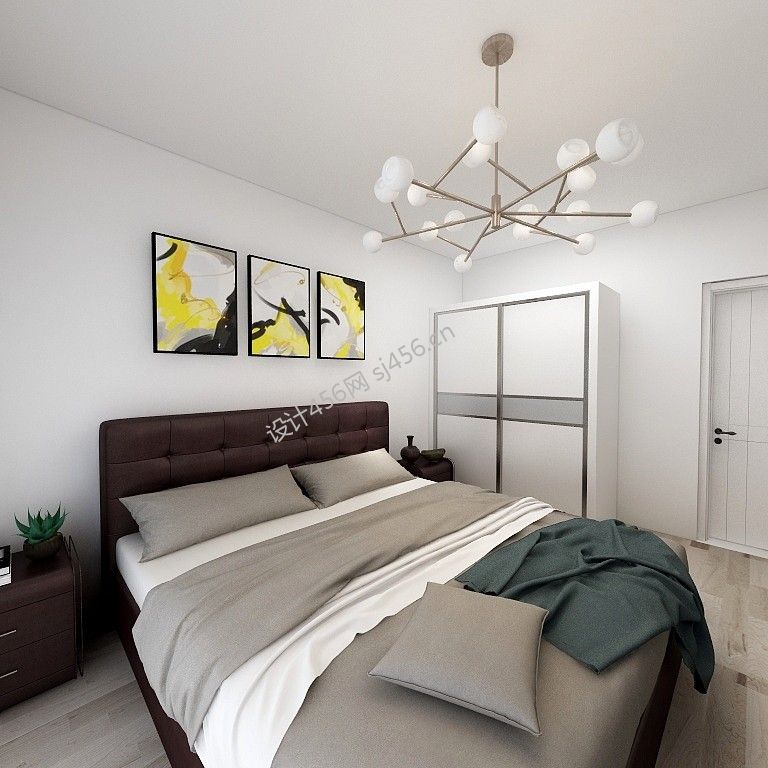 98平米现代简约风格三居室卧室背景墙装修效果图