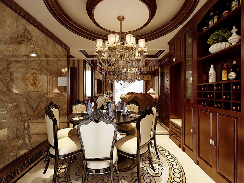 142平米欧式风格三居室餐厅酒柜装修效果图
