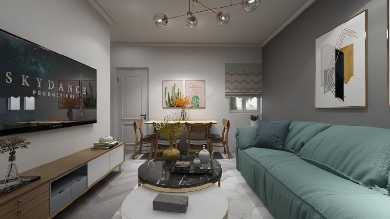 80㎡北欧简约风二居室客厅吊顶装修效果图