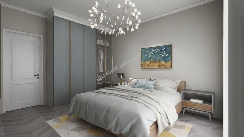 80㎡北欧简约风二居室卧室背景墙装修效果图