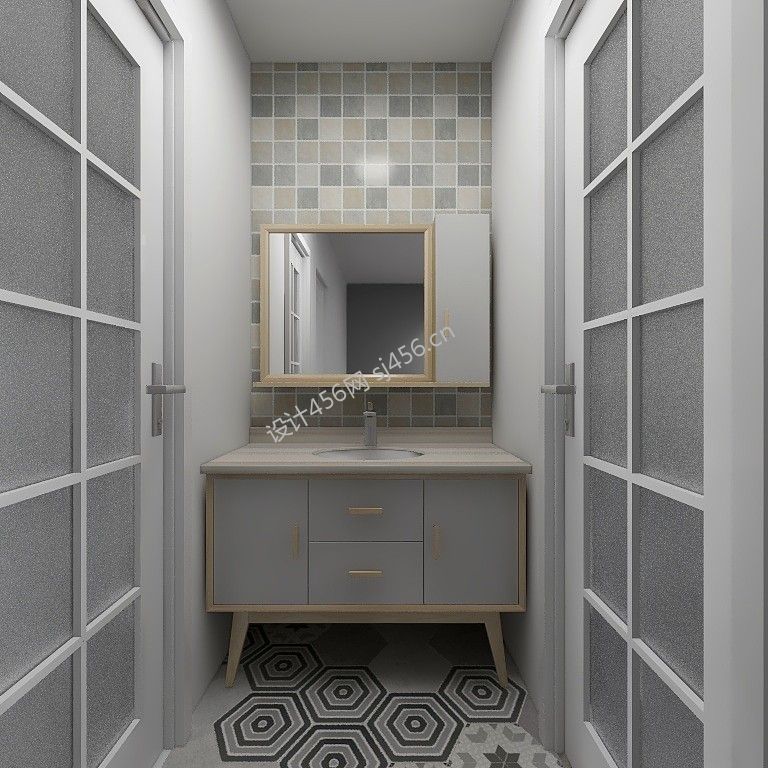 80㎡北欧简约风二居室卫生间洗漱台装修效果图