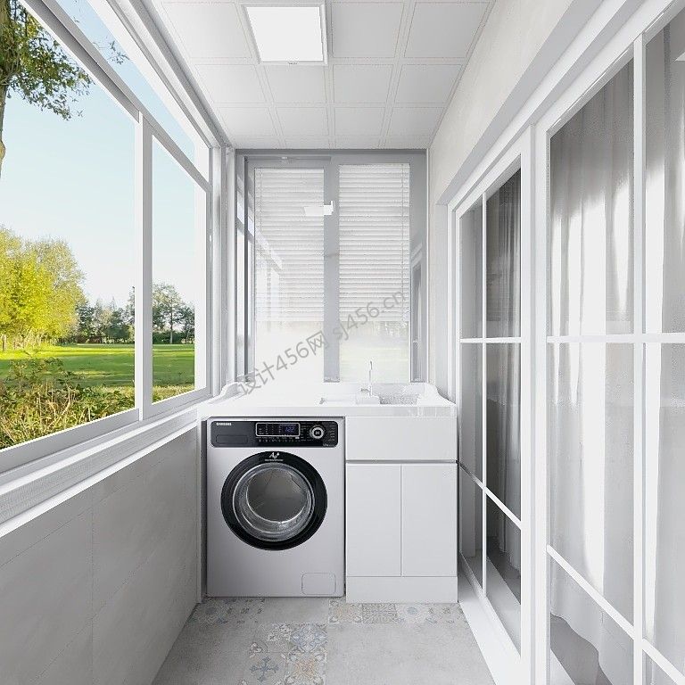 80㎡北欧简约风二居室阳台洗衣机柜装修效果图