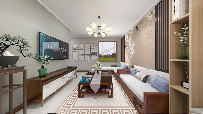 111㎡新中式风格三居室客厅吊顶装修效果图