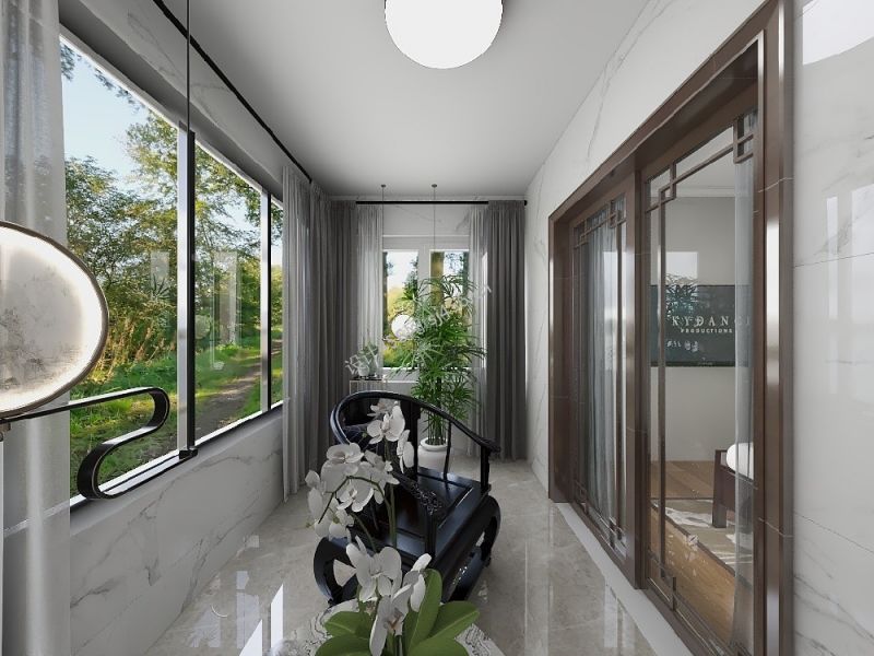 111㎡新中式风格三居室阳台沙发装修效果图