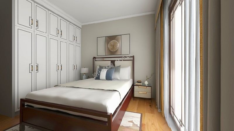 111㎡新中式风格三居室卧室背景墙装修效果图
