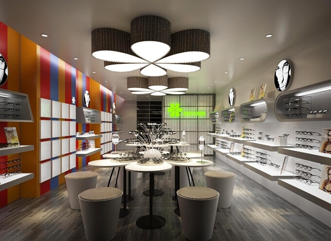在眼镜店室内装修中,追求美观应是建立在功能的基础上的。但有的装修安装了7-9的大吊灯,往往因为奶白的反光灯罩及磨砂灯泡,造成了昏暗的照明后果,这种处理办法是既费电又不适用,且给人以压抑的感觉。又如有的吊柜拉手过高,使用起来非常不便。还有的眼镜店装修,过分追求小趣味,在地面分割上没有依据功能的要求划分各种材质,所拼贴出来的图案令人眼花缭乱,没有起到功能分共的导向作用。