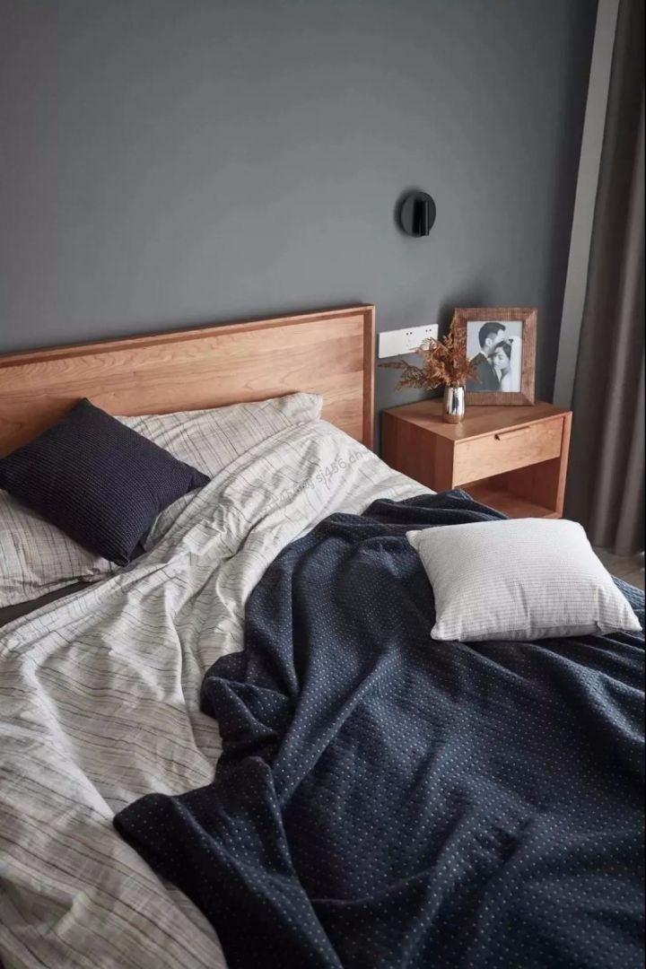 110平米现代简约三居室卧室背景墙装修图片