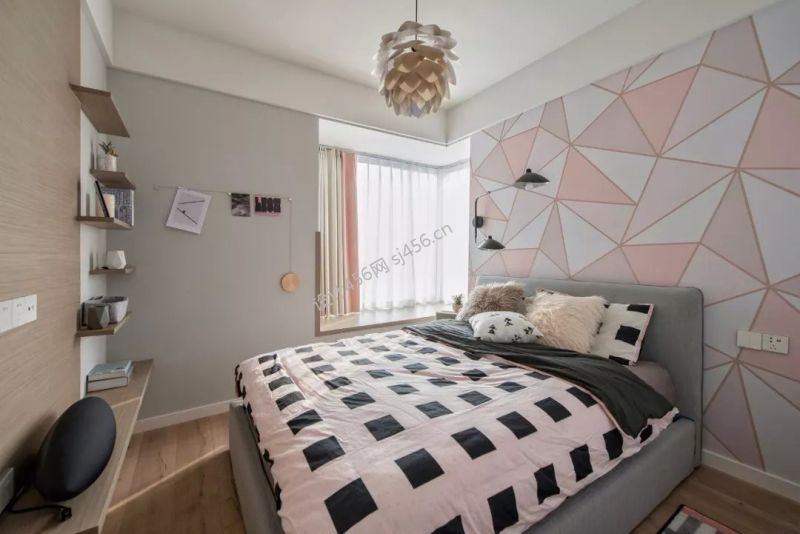 80平米北欧风格二居室主卧背景墙