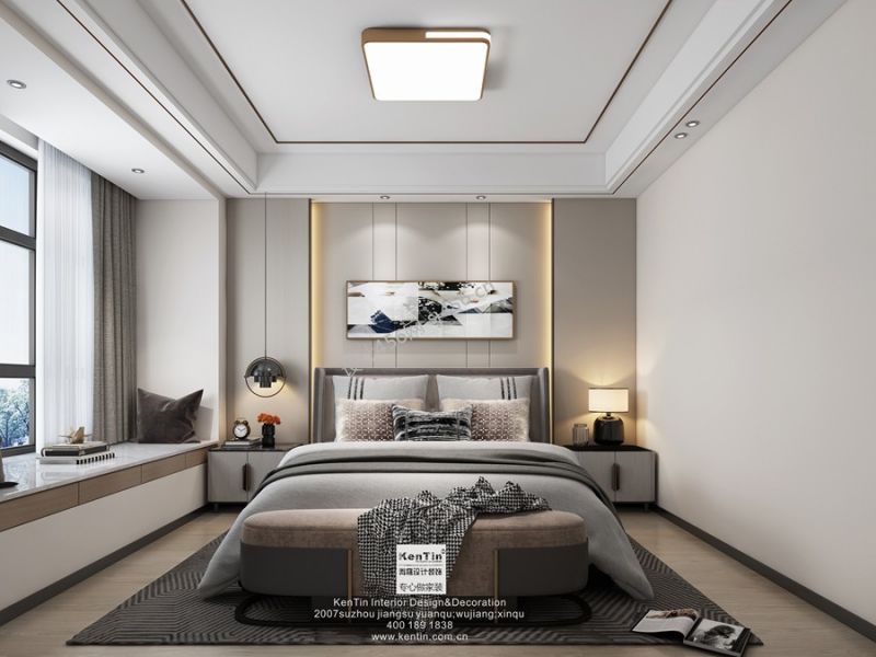 120平米现代简约三居室卧室背景墙装修效果图