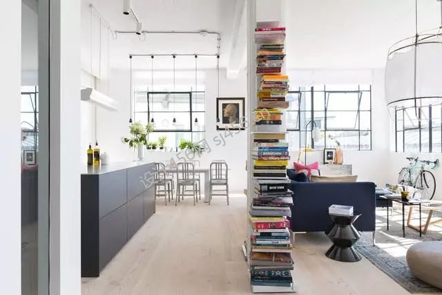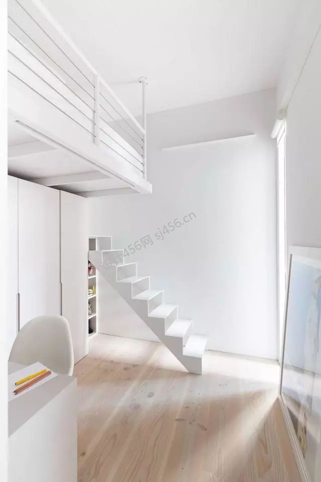 设计理念: 如今生活忙碌的白领精英们越来越多地喜欢loft公寓,空间的透明性,取消了硬性的墙体分隔,给人营造一种随心自由的生活方式,也是放松休憩的最佳空间,这可能也是受到越来越多有个性的年轻人青睐的原因吧! 客厅虽小,但样样俱全。其实客厅、餐厅、厨房整体上是处于一个大的空间内,相互交织,并没有实体的墙隔开,放在一起又是那么的和谐。整个地面采用的是原木色的地板搭配大白色的墙壁及深色系的家具装点,再摆上几盆小绿植,高冷随性中又不失轻松恬静之感。 Loft中不可或缺的一部分就是小楼梯,纯白色的格子楼梯,给人一种空灵轻盈之感。楼梯下方的方格储物柜,为家居中增加了不少的储物空间。 如今生活忙碌的白领精英们越来越多地喜欢loft公寓,空间的透明性,取消了硬性的墙体分隔,给人营造一种随心自由的生活方式,也是放松休憩的最佳空间,这可能也是受到越来越多有个性的年轻人青睐的原因吧! 客厅虽小,但样样俱全。其实客厅、餐厅、厨房整体上是处于一个大的空间内,相互交织,并没有实体的墙隔开,放在一起又是那么的和谐。整个地面采用的是原木色的地板搭配大白色的墙壁及深色系的家具装点,再摆上几盆小绿植,高冷随性中又不失轻松恬静之感。 Loft中不可或缺的一部分就是小楼梯,纯白色的格子楼梯,给人一种空灵轻盈之感。楼梯下方的方格储物柜,为家居中增加了不少的储物空间。