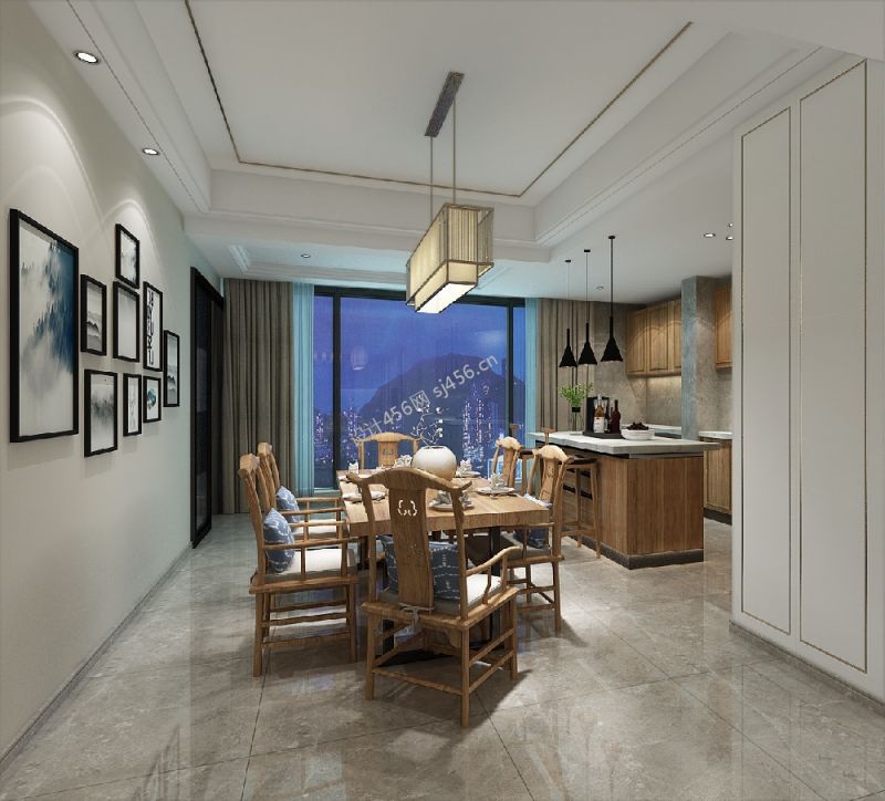 128平米新中式风格三室两厅餐厅厨房设计案例