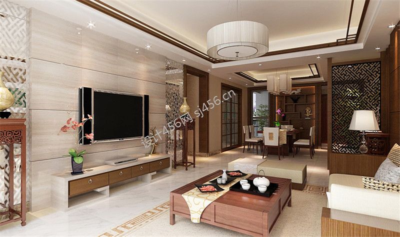 140平米现代中式风格三居室主卧室吊顶装修图片