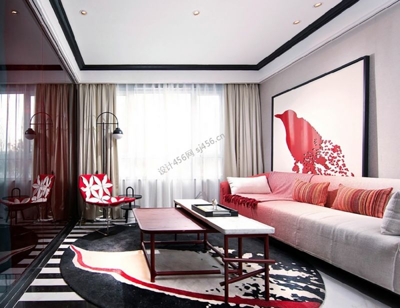 89㎡二居室混搭风格客厅吊顶装修效果图