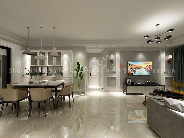 详情香颂小镇三居115平现代风格客厅餐厅一体装修设计效果图