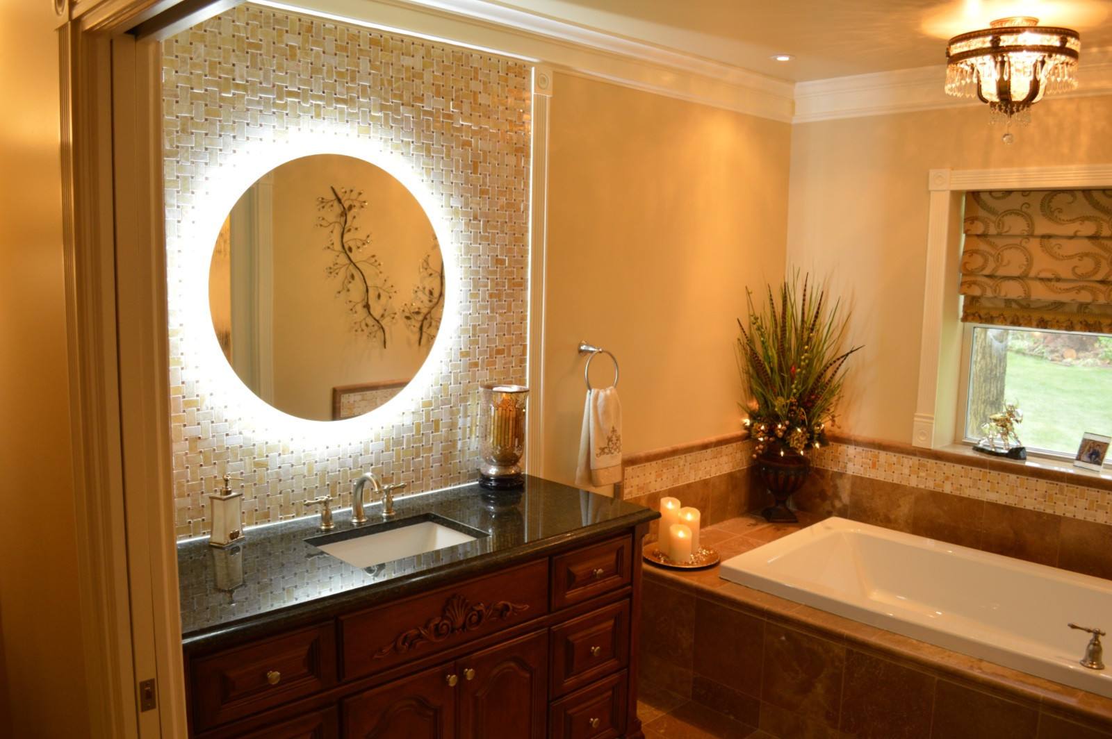 浴室灯具的使用相对于其他房间来说,要频繁的多。所以选择白炽灯会比较省电。而且我们都知道白炽灯的灯光颜色有点偏黄,这种灯光比较柔和,给人一种温馨的感觉,人看起来也会比较漂亮。但是像化妆台旁边我们还是可以再设置一个日空灯,因为我们在照镜子的时候会看的比较清晰。