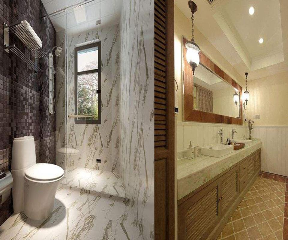 大空间的浴室灯具可以选择安装壁灯,使用间接灯光造成强烈的灯光效果。在坐便器、浴缸、花洒的顶位各安装一个筒灯,使每一处关键部位都能有明亮的灯光。