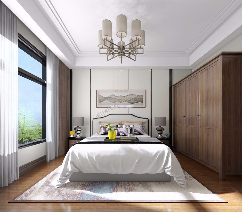 143平三居室新中式风格卧室装修效果图