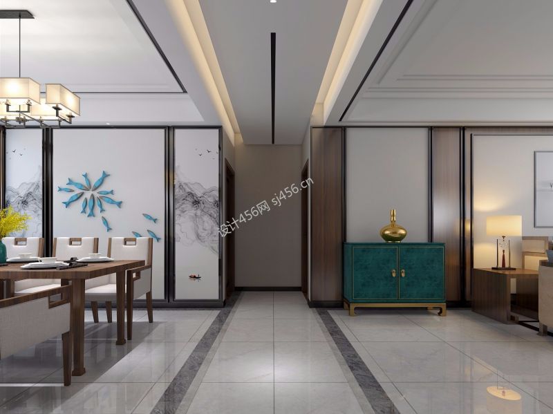 143平三居室新中式风格餐厅装修效果图