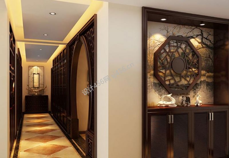 三居135平新中式风格家装走廊效果图片
