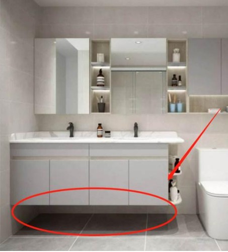 常见的卫生间都是四五平米左右的面积,这么小的空间里面要实现洗澡、上厕所、刷牙洗脸等功能。小空间需要实现这么多功能,装修不仔细的确容易出现卫生死角。最常见的卫生死角就是洗漱下面的浴室柜,因为卫生间比较潮湿,时间长了浴室柜下面容易发霉发黑。