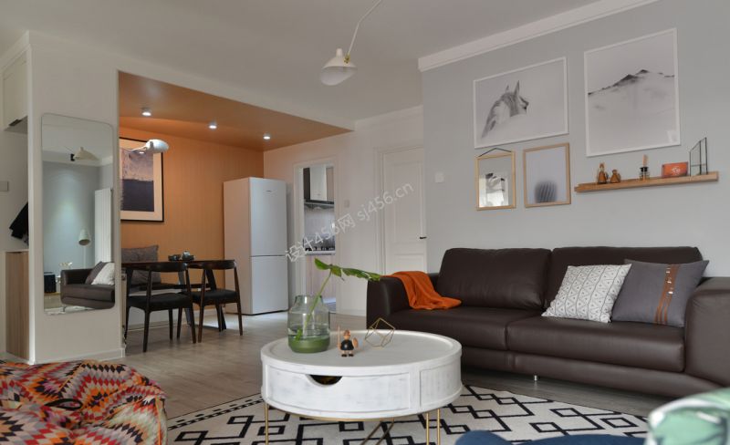 北欧风格89平米客厅沙发背景装饰装修效果图