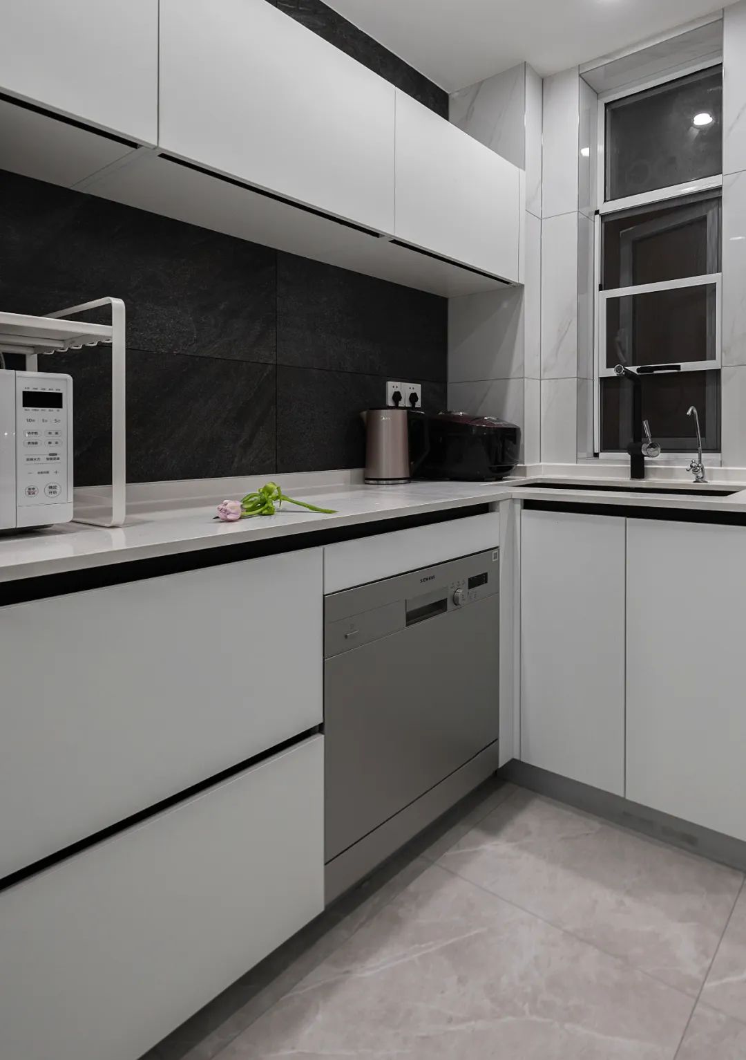厨房,U型的橱柜设计,让厨房的可操作性空间变得更多,收纳空间也更多。
