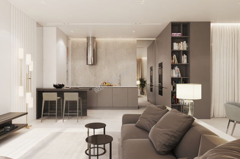 150㎡四居室轻奢风格客厅厨房装修效果图