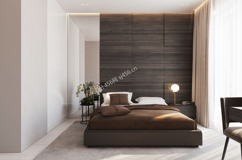 150㎡四居室轻奢风格卧室床头装修效果图