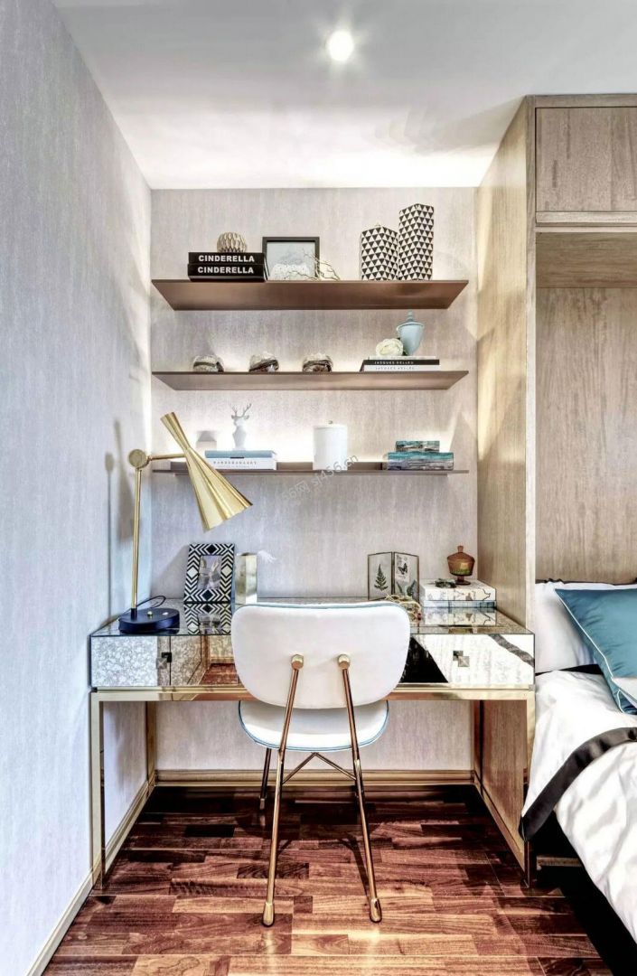 轻奢风格140平米四室两厅卧室书桌家装图片