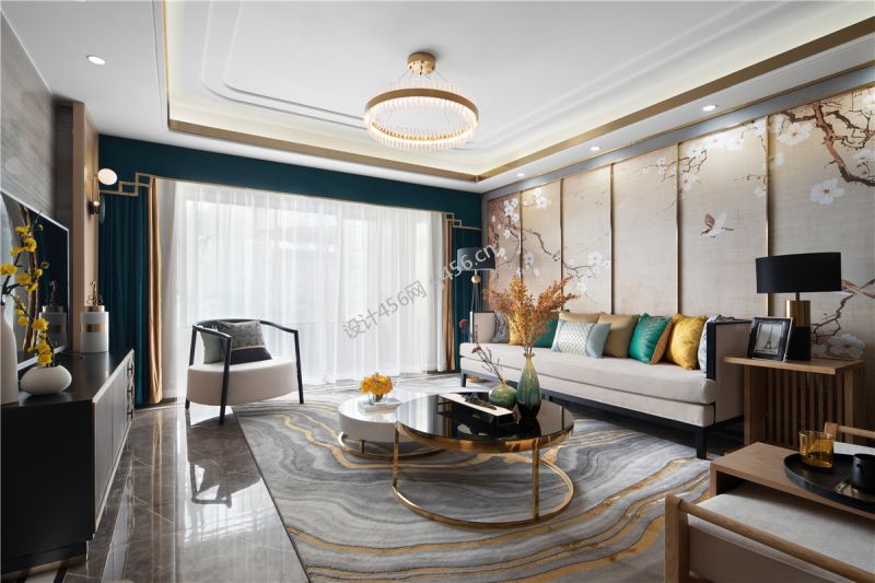 新中式风格123平米三室两厅客厅家装效果图